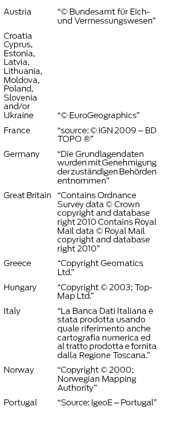 Third Party Notices. Any and all copies of the Data and/or packaging relating thereto shall include the respective Third Party Notices set forth below and used as described below corresponding to the Territory (or portion thereof) included in such copy: