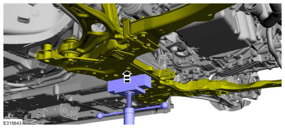 Lower the front subframe only enough to allow removal of the catalytic converter assembly.