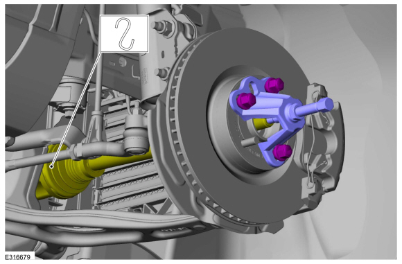 NOTICE: Use care when releasing the lower arm and wheel knuckle into the resting position or damage to the ball joint seal may occur.