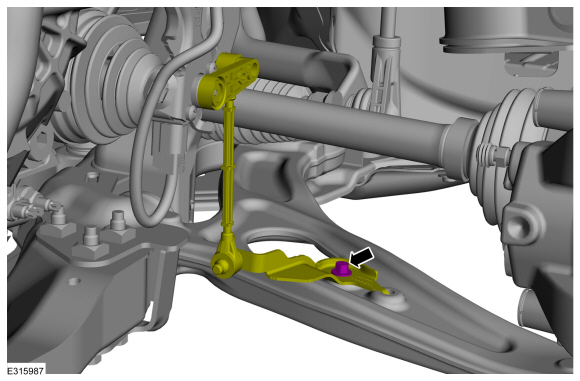 NOTICE: Use care when releasing the lower arm and wheel knuckle into the resting position or damage to the ball joint seal may occur.